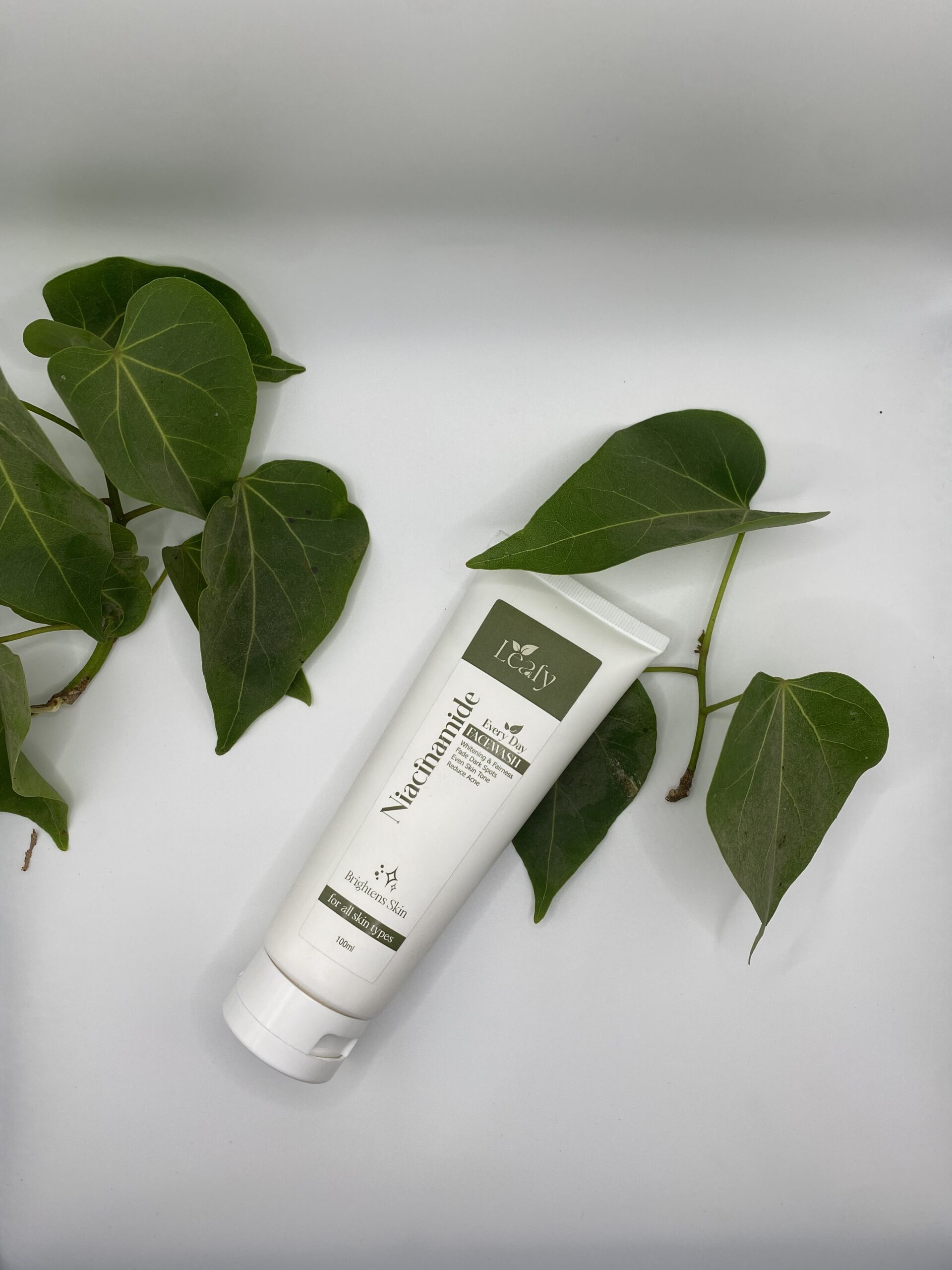 Leafy Niacinamide Every Day Facewash helps to reduce fine lines, wrinkles, and hyperpigmentation,