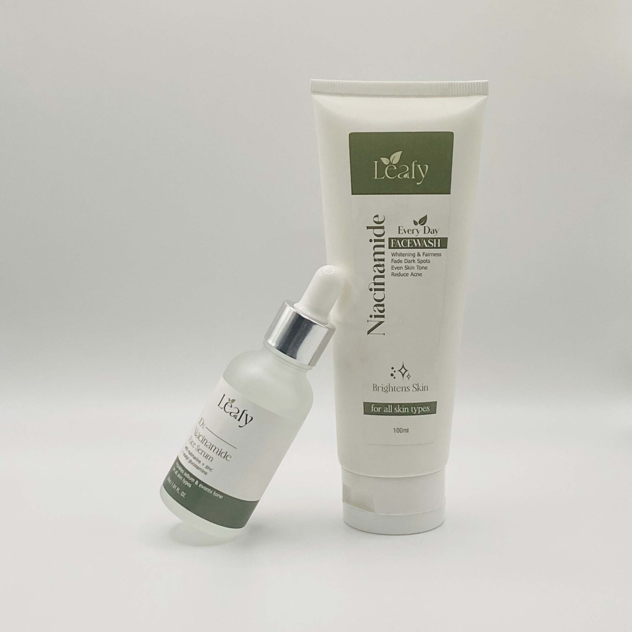 Brighten dull skin with our Skin Brightening Bundle, includes: Niacinamide Facewash + Niacinamide Serum